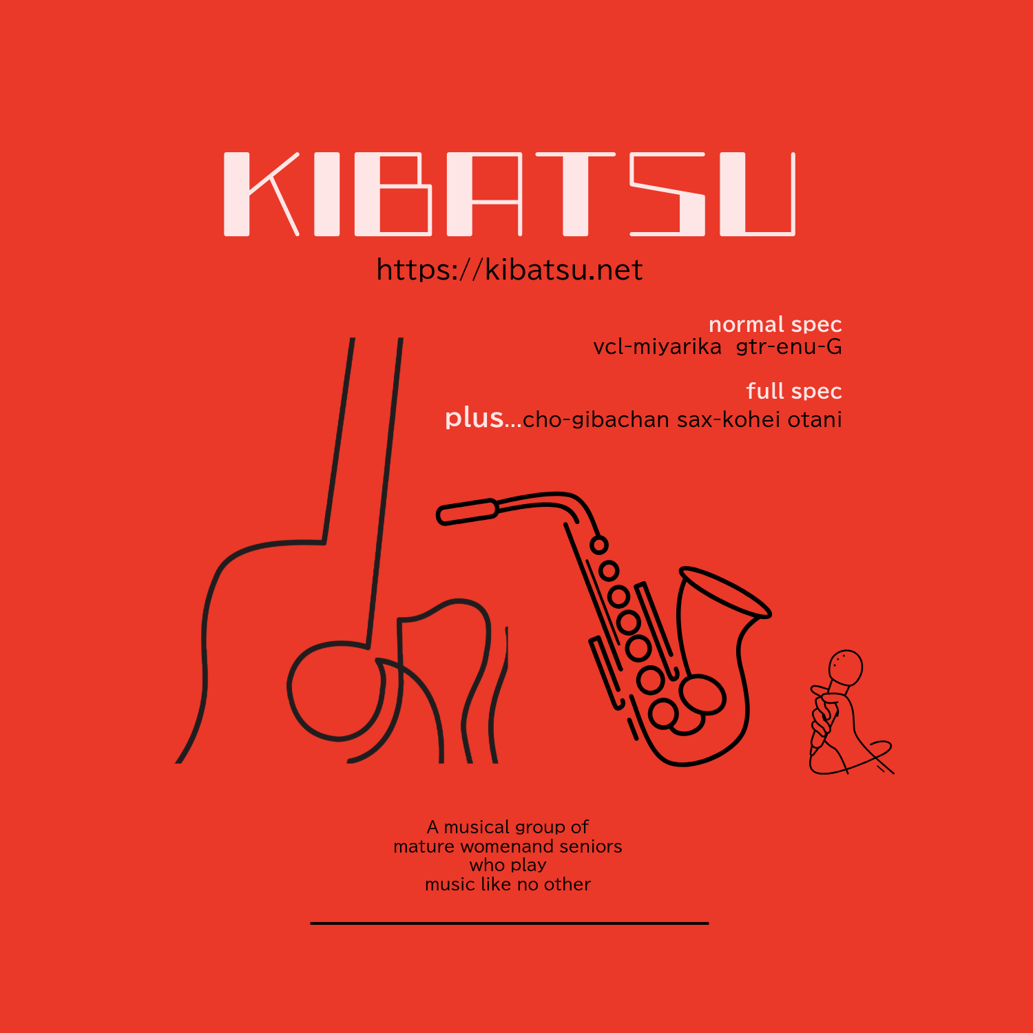 キバツオフィシャルサイト 2025.12.072025.12.08 メンバー,,,ボーカル&コーラス…みやりかギター&コンポーザー…enu-G(木村菜緒)ボーカル&コーラス…マリコ(ぎばちゃん)サックス…オオタニコウヘイ ライブ,,,みやりかとenu-Gのノーマルスペックで全国でライブ活動そしてマリコ(ぎばちゃん)とオオタニコウヘイが加わったフルスペックで北陸三県でライブ活動