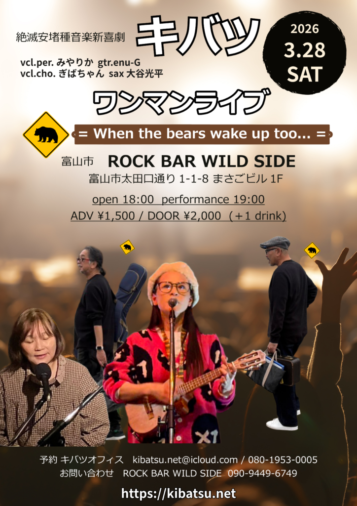 2026/3/28(土曜日)富山市のロックバー ワイルドサイドにてワンマンライブをさせていただきます!