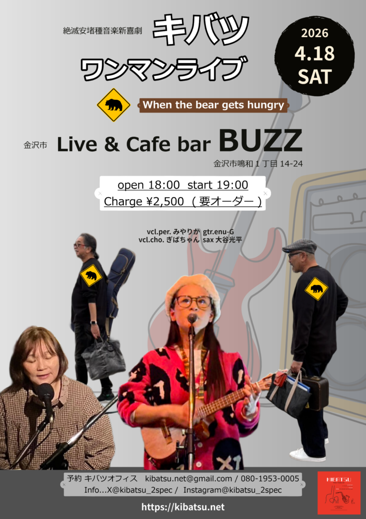 2026/4/18(土)ワンマンライブ(金沢市鳴和BUZZ)